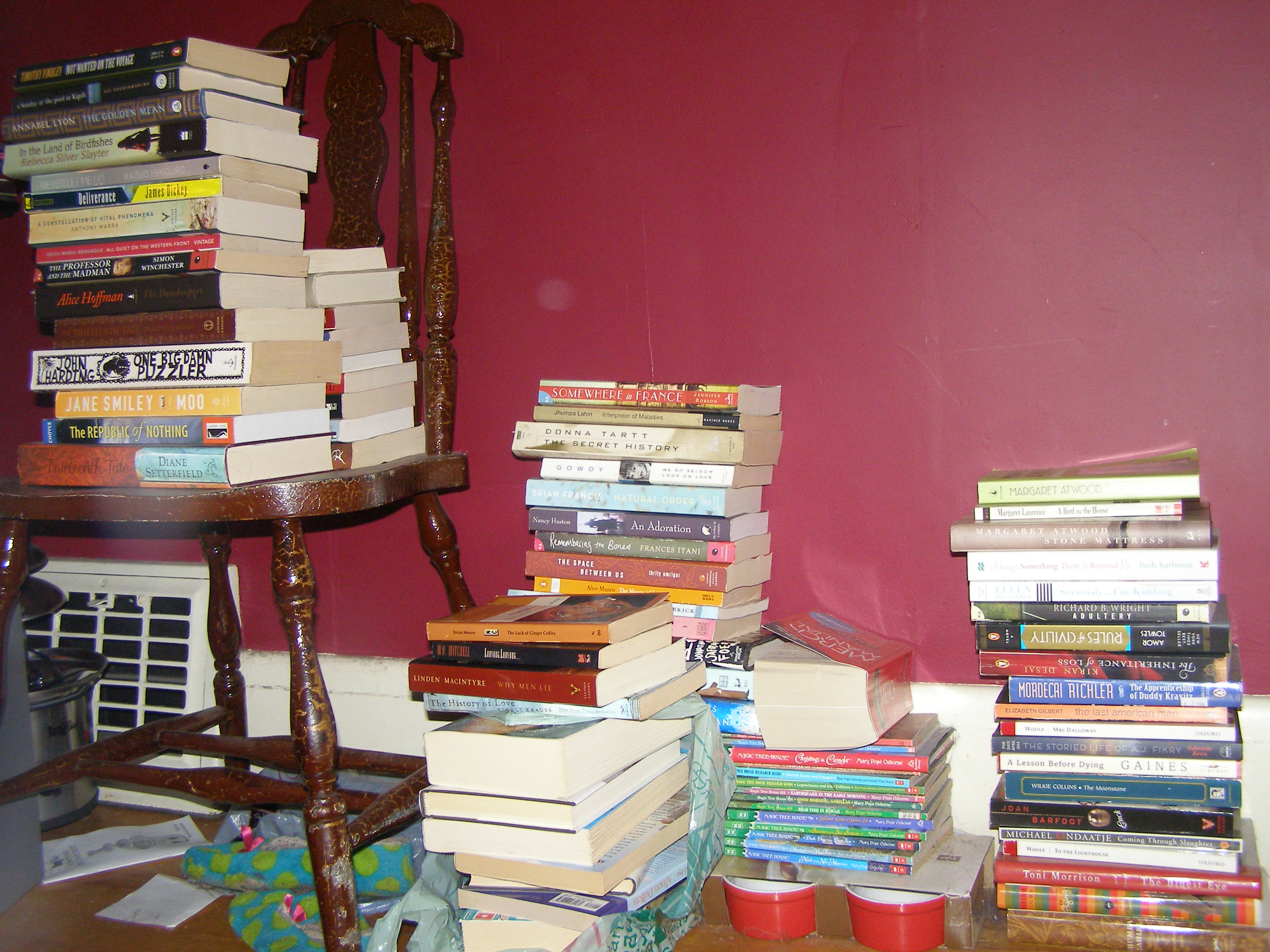 I know! Isn’t it fun to see other people’s book stacks? I think I could look at my stacks all day, reminding myself of all the good things I have to read!