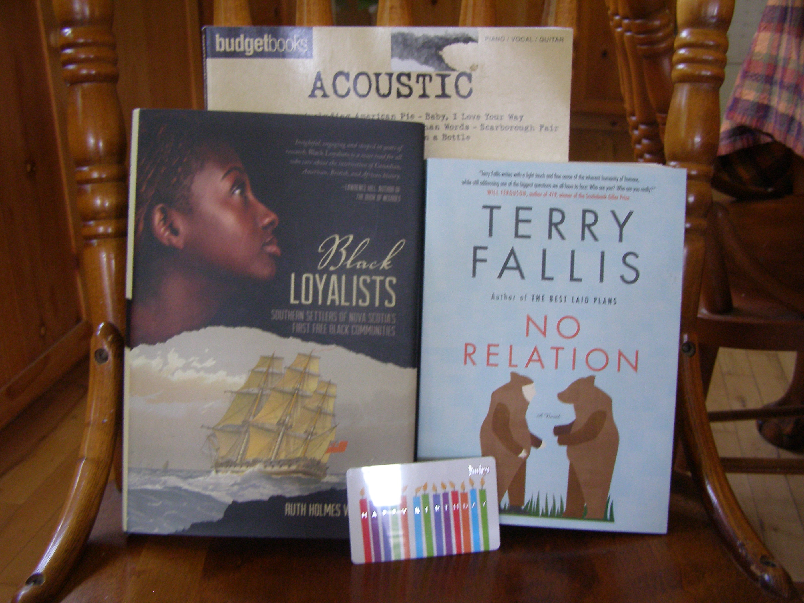My mother bought me Black Loyalists: Southern Settlers of Nova Scotia’s First Free Black Community by Ruth Holmes Whitehead and No Relation by Terry Fallis.