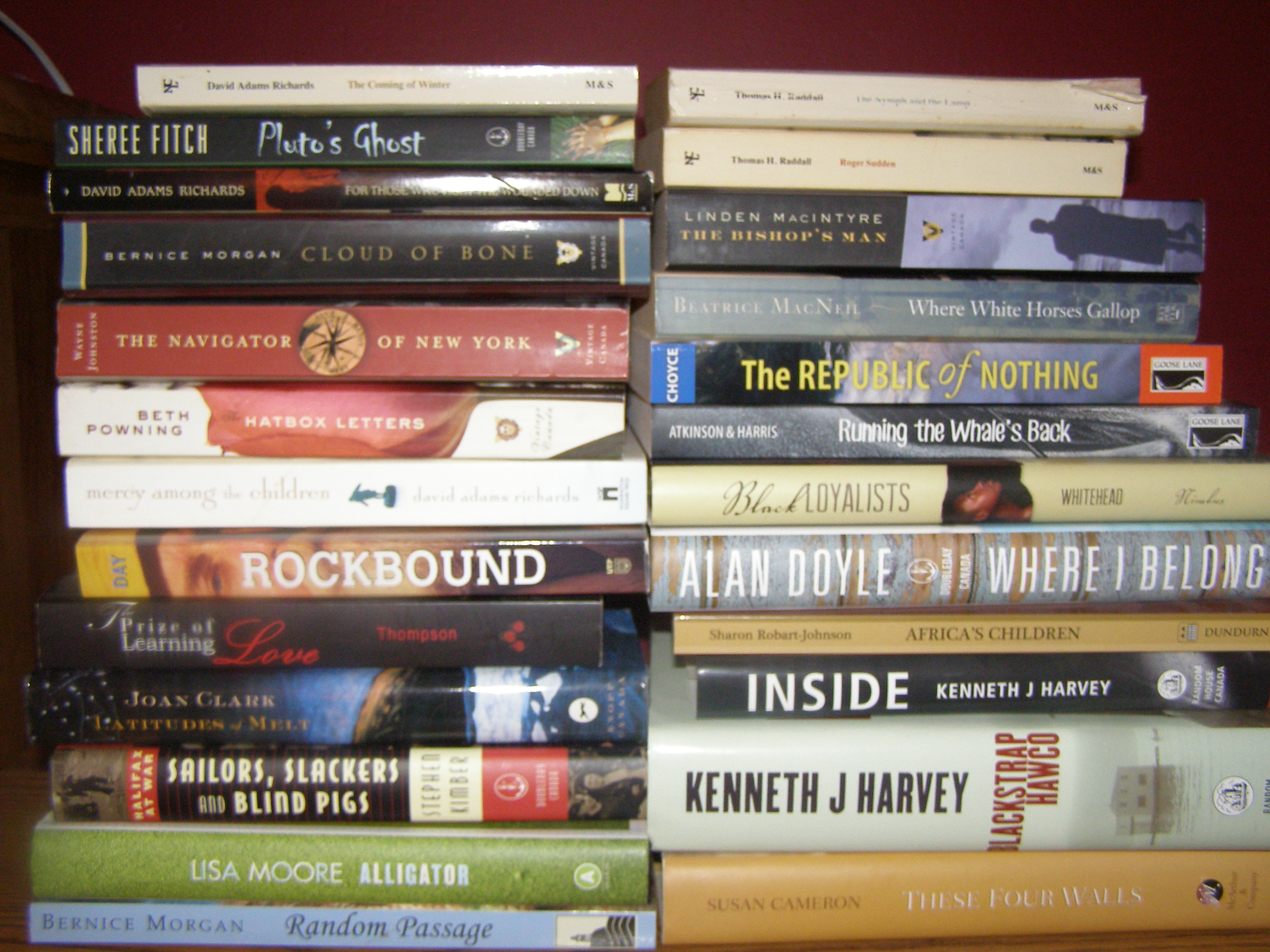 It was a lot of fun going through my stacks pulling out the Atlantic Canadian authors. Not as much fun putting them all back. In hindsight, I should have rearranged all my books, so that I could have kept these ones together. But, then I wouldn’t have the fun of hunting them up again. 🙂