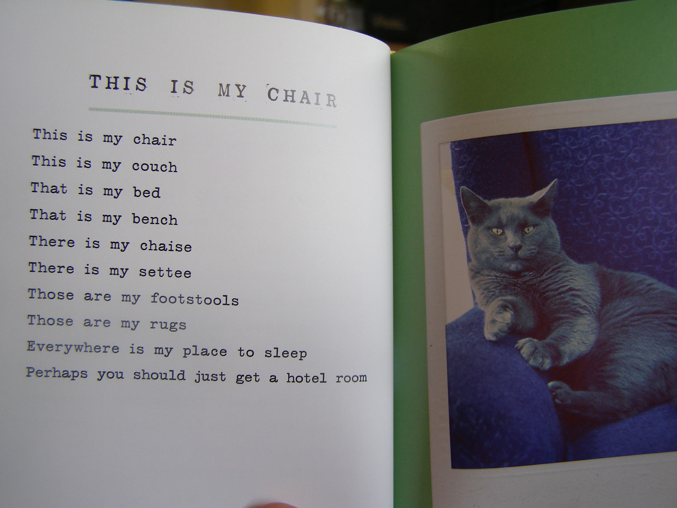 I definitely need to get hold of that cat poetry book. “Everywhere is my place to sleep / Perhaps you should just get a hotel room” is too true!