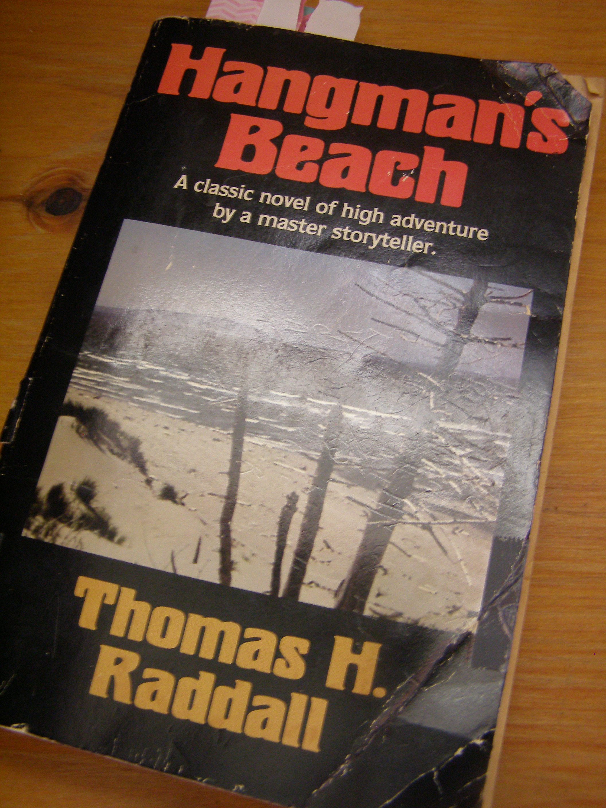 OLYMPUS DIGITAL CAMERAA little while ago I wrote about my re-read of The Nymph and the Lamp. I went on and on about how much I loved it and what a great story-teller Thomas Raddall is, but I only had one of his books under my belt; I felt like I needed more evidence to back me up. So, I decided to jump right into my second Raddall book, Hangman’s Beach. It also serves nicely to fill the ‘R’ requirement for my A-Z CanLit Project.