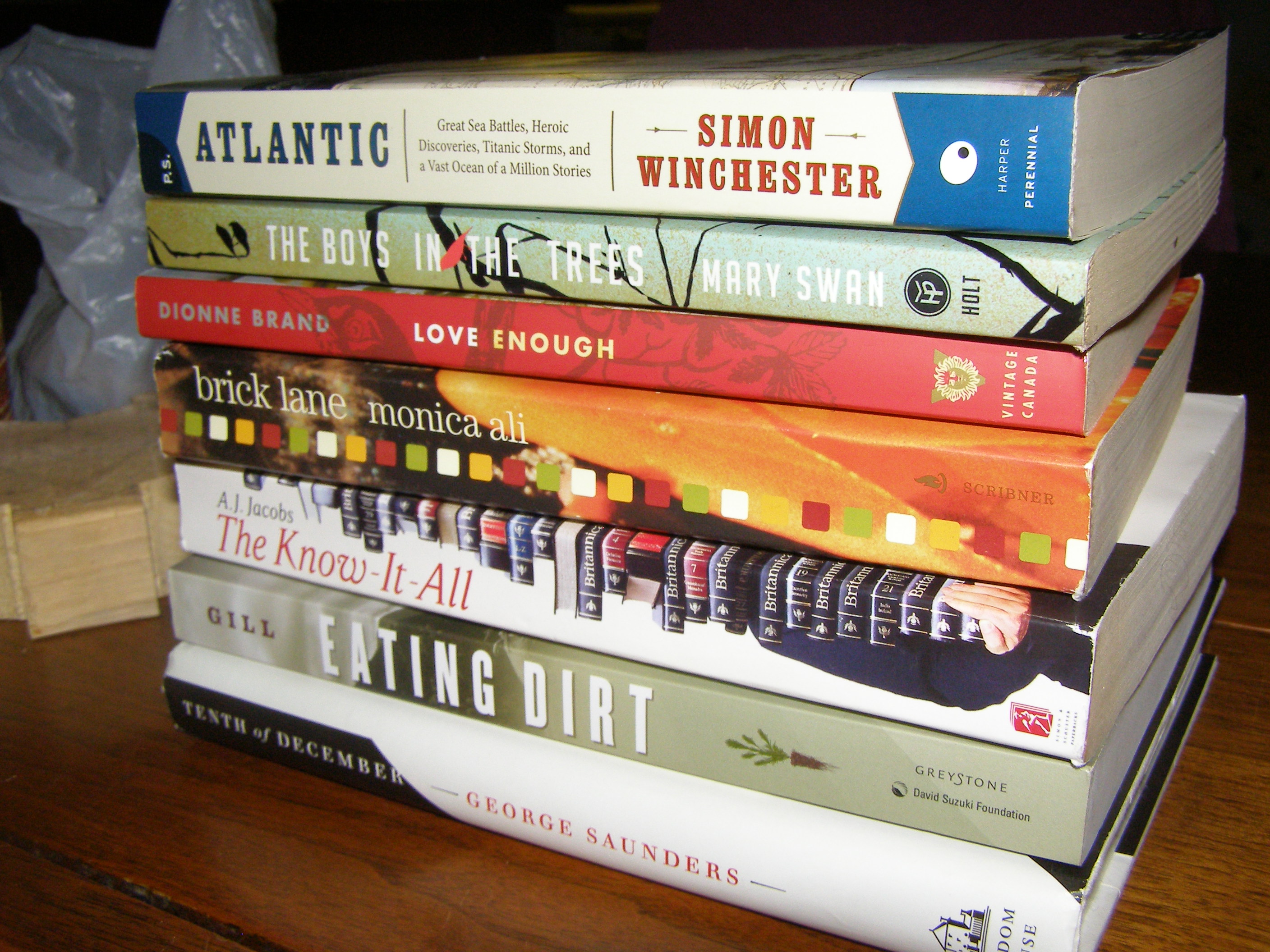 I partly read The Motorcyclist by George Elliott Clarke. I read about 50 pages in, and although the writing was poetic as always, the subject didn’t appeal to me (there’s a lot about the love he has for his motorcycle, as well as the love many women apparently have for his motorcycle, or him because he has a motorcycle. Also his love for women. But it is based on the real diary of a young man, so…) and I had no great desire to keep reading. But I did want to know how it ended, so I skimmed through the rest of it and read the end. I think the best thing about it is the look you get at the life of a young black man in 1959 Halifax. I’d love to know what you think if you’ve read the whole thing!