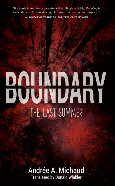 Andrée A. Michaud is a Canadian novelist and playwright from Quebec. She is the author of ten novels and is a two-time winner of the Governor General’s Award for French-language fiction, for Le ravissement in 2001 and for Bondrée in 2014. Boundary is also the winner of the Arthur Ellis Prize for best French-language mystery novel, the Saint-Pacôme Prize for mystery novels, and the Quebec Arts Council Prize for best literary work from Quebec’s Eastern Townships.