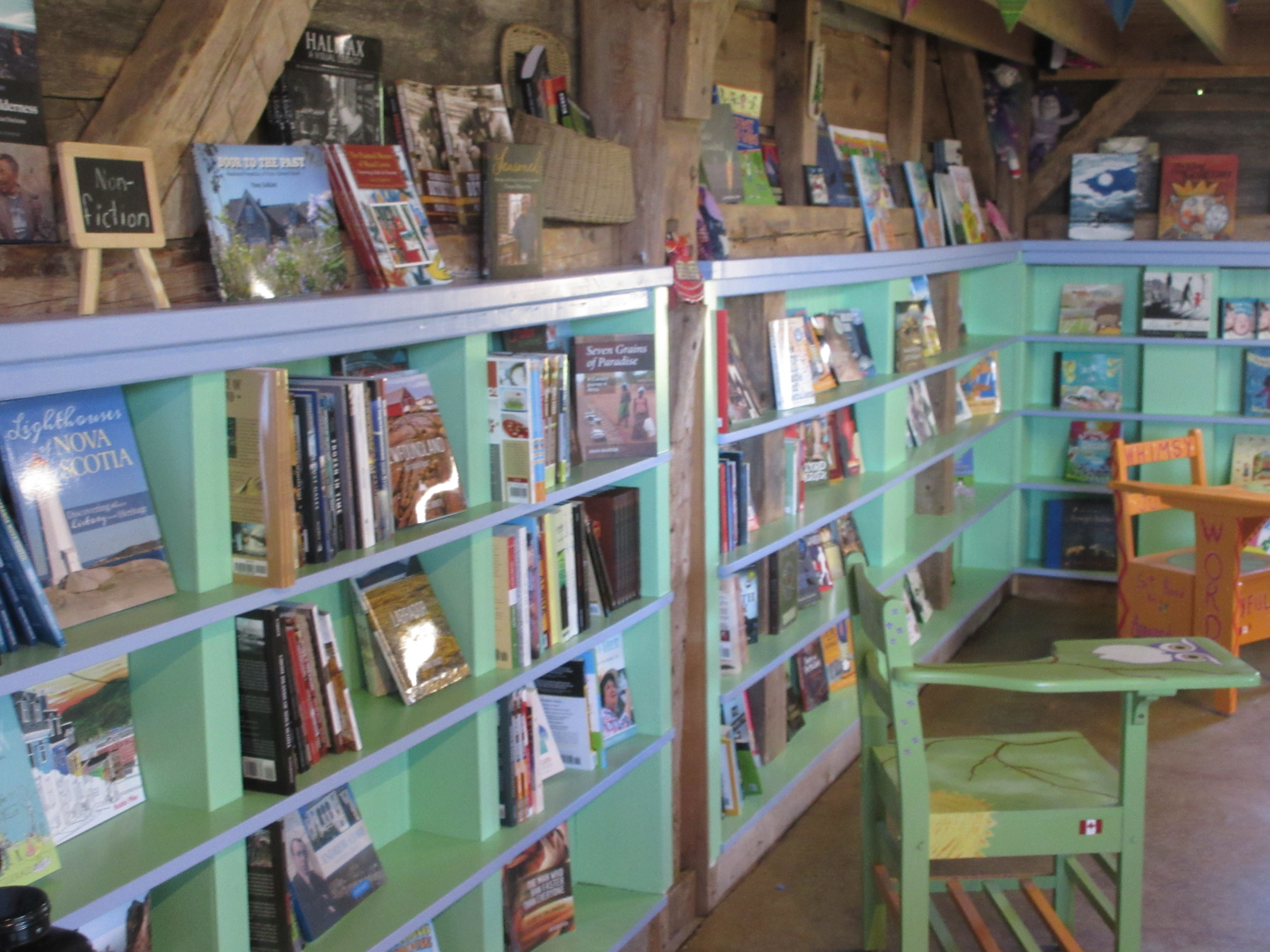3) Mabel Murple’s Book Shoppe and Dreamery. Sheree Fitch has opened a wonderful new book shop in River John, Nova Scotia, and I was lucky enough to visit while Melanie Fishbane was there to do a reading from her new YA book, Maud (my review).