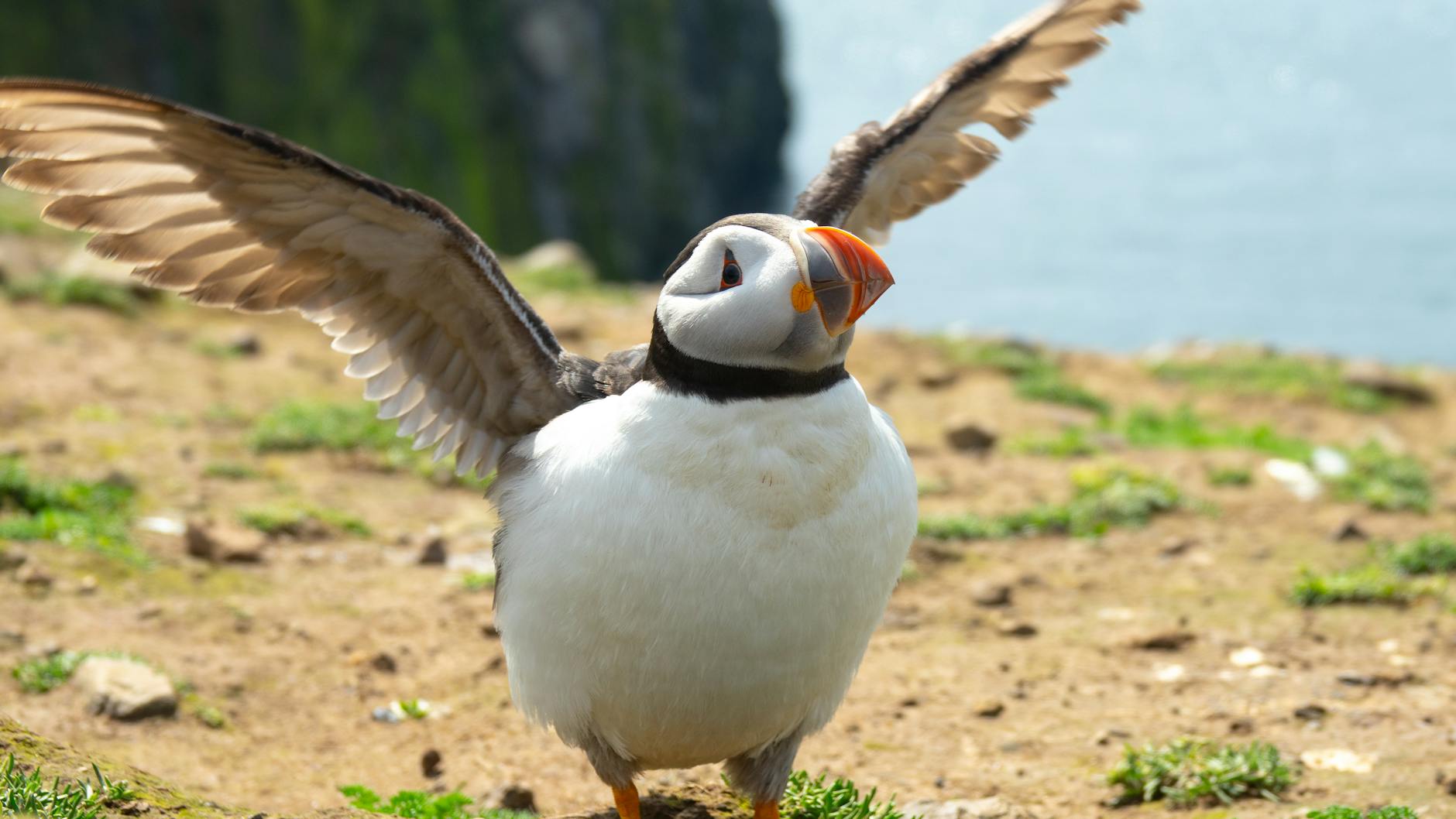 “We began to encounter large rafts of birds sitting on the water, diving or skittering over the surface as the boat approached. And as we drew nearer, the racket of the colony: Kittiwakes complaining their own names in a high-pitched nasal ‘Kitti-WAKE! Kitti-WAKE’! Murres erupting in a series of guffaws like old men laughing at their own jokes. Thousands of birds greeting, warning, sparring, amplified against the rocky cliffs. The deep, penetrating funk of all that guano–its own force. At the last moment, the whirr of hundreds of puffin wings as they cleared the hillside in a panicked flight over our heads. I was astonished but tried to remember to keep my mouth closed.”